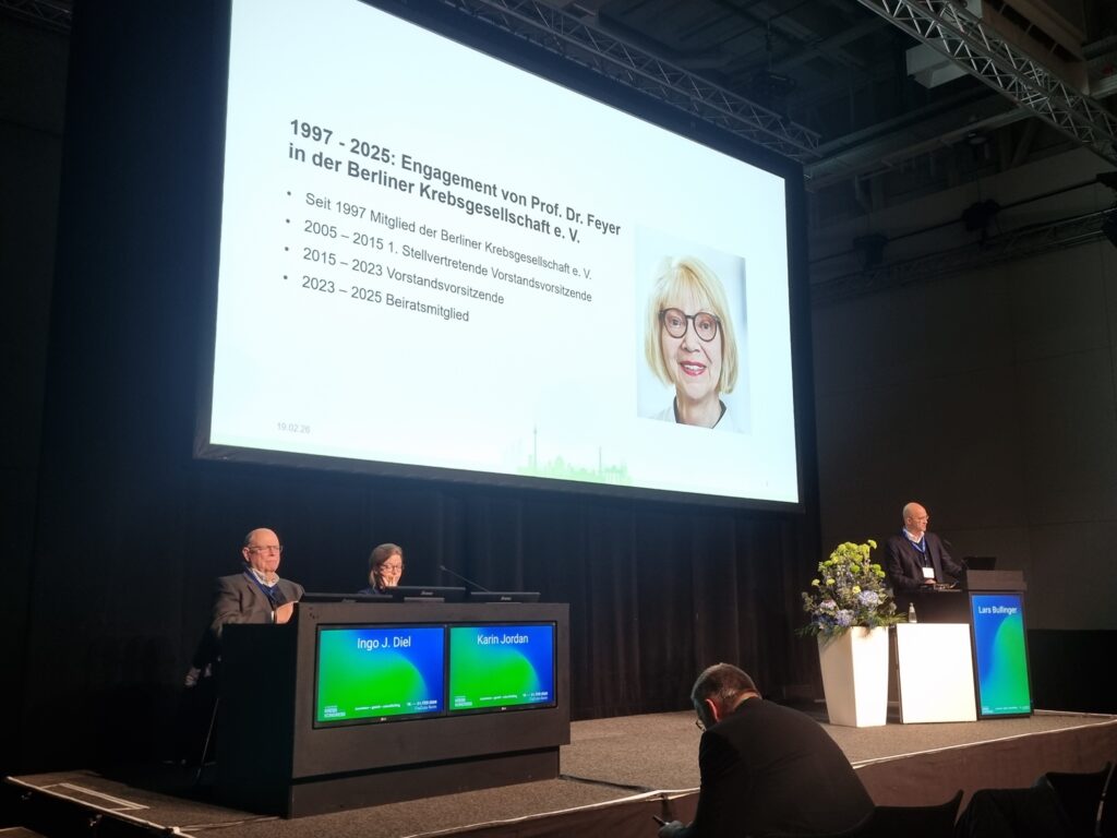 Sehr berührend und einfühlsam blickten wir am Morgen des 19. Februar 2026 gemeinsam auf das Leben und Wirken von Frau Professorin Petra Feyer zurück, die im Januar 2025 überraschend verstorben ist. In persönlichen und bewegenden Vorträgen würdigten die Rednerinnen und Redner ihren herausragenden Einsatz für die Supportivtherapie aus unterschiedlichen Perspektiven.