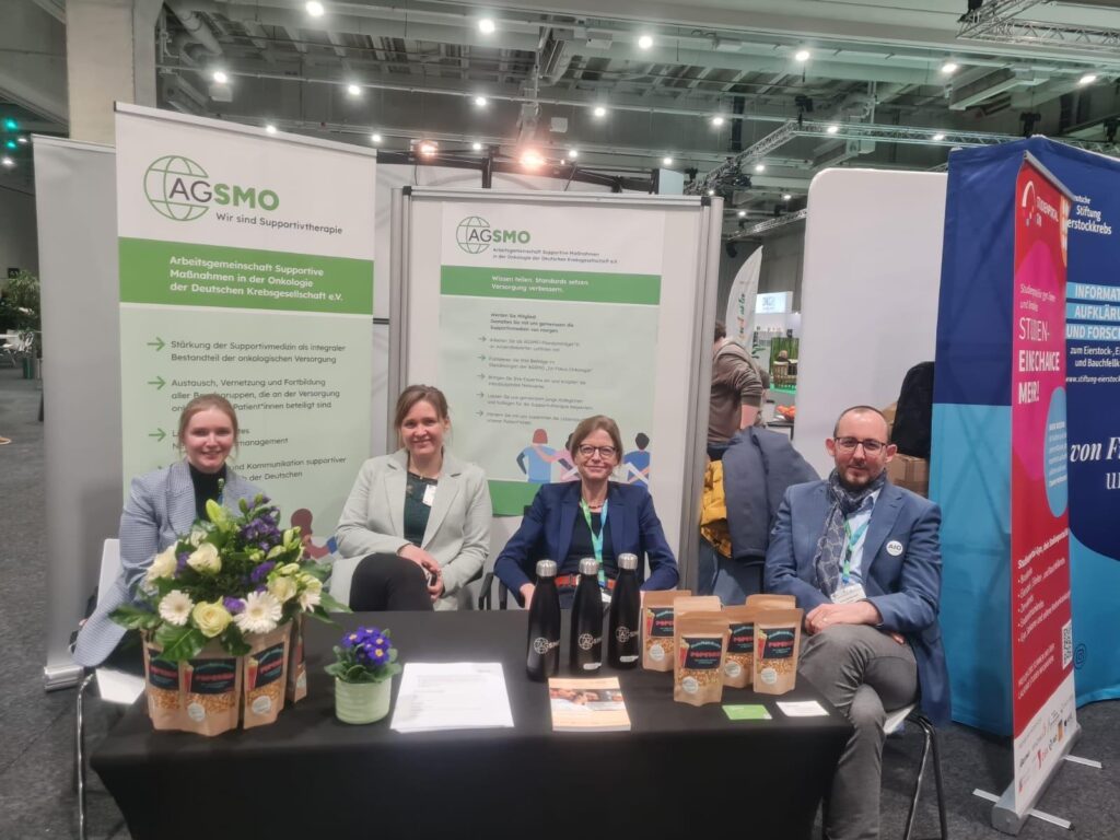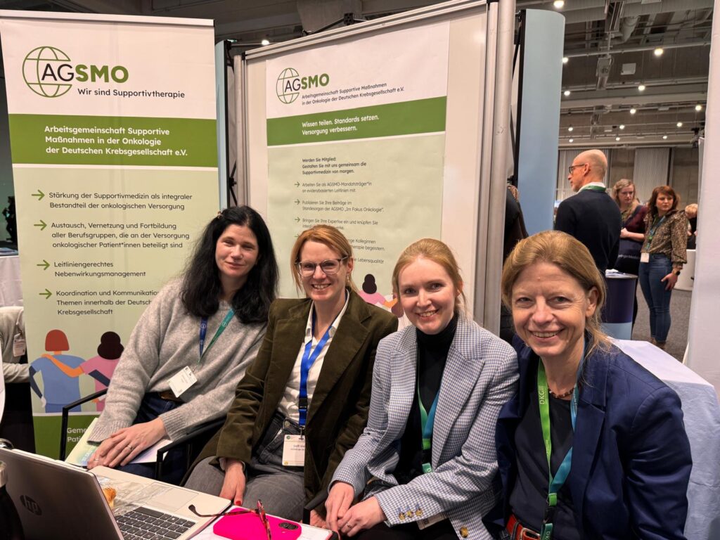 Premiere für uns am DKK 2026: eine eigener AGSMO-Stand in der Kommunikationshalle! Wir haben viele Interessierte Fachbesucher sprechen können und neue Interessenten für die Mitarbeit in der Supportivtherapie gewinnen können. Auch andere neue Formate wie das „AG Speeddating“ wurden von uns mitgestaltet. Natürlich war die Supportivtherapie auch im wissenschaftlichen Programm zahlreich vertreten und wir haben uns über das große Interesse an supportiven Themen gefreut.